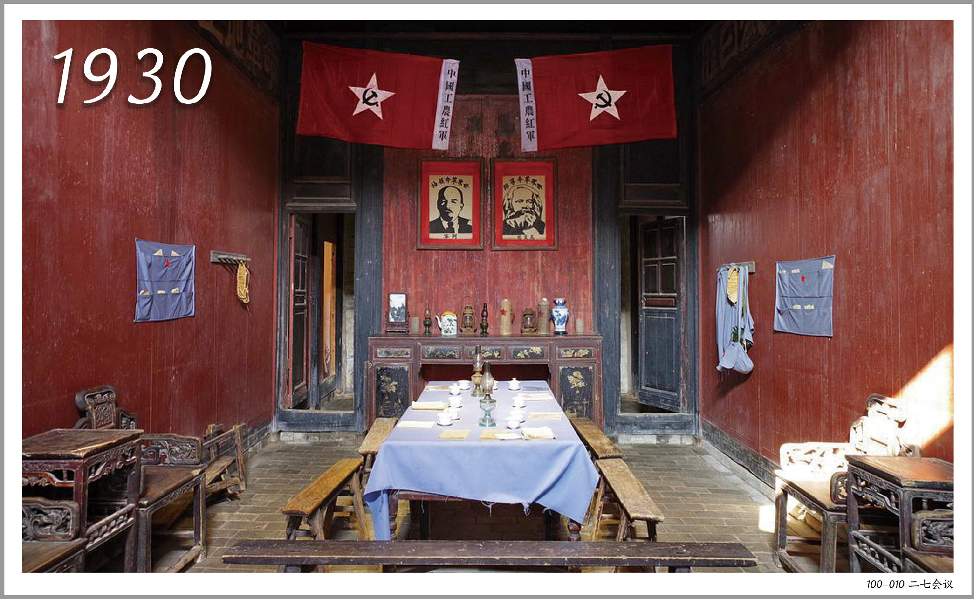 1930年2月7日,“二七會議”在江西吉安召開,毛澤東主持會議,會上成立了紅四、紅五、紅六軍的共同前委,并確定了黨深入土地革命、建立革命政權(quán)和發(fā)展工農(nóng)武裝的任務(wù)。1930年成為中國共產(chǎn)黨戰(zhàn)略轉(zhuǎn)移的關(guān)鍵之年,黨開始以農(nóng)村革命根據(jù)地為陣地,轟轟烈烈開展土地革命,步步為營掀起武裝斗爭,推動新民主主義革命走向復(fù)興。