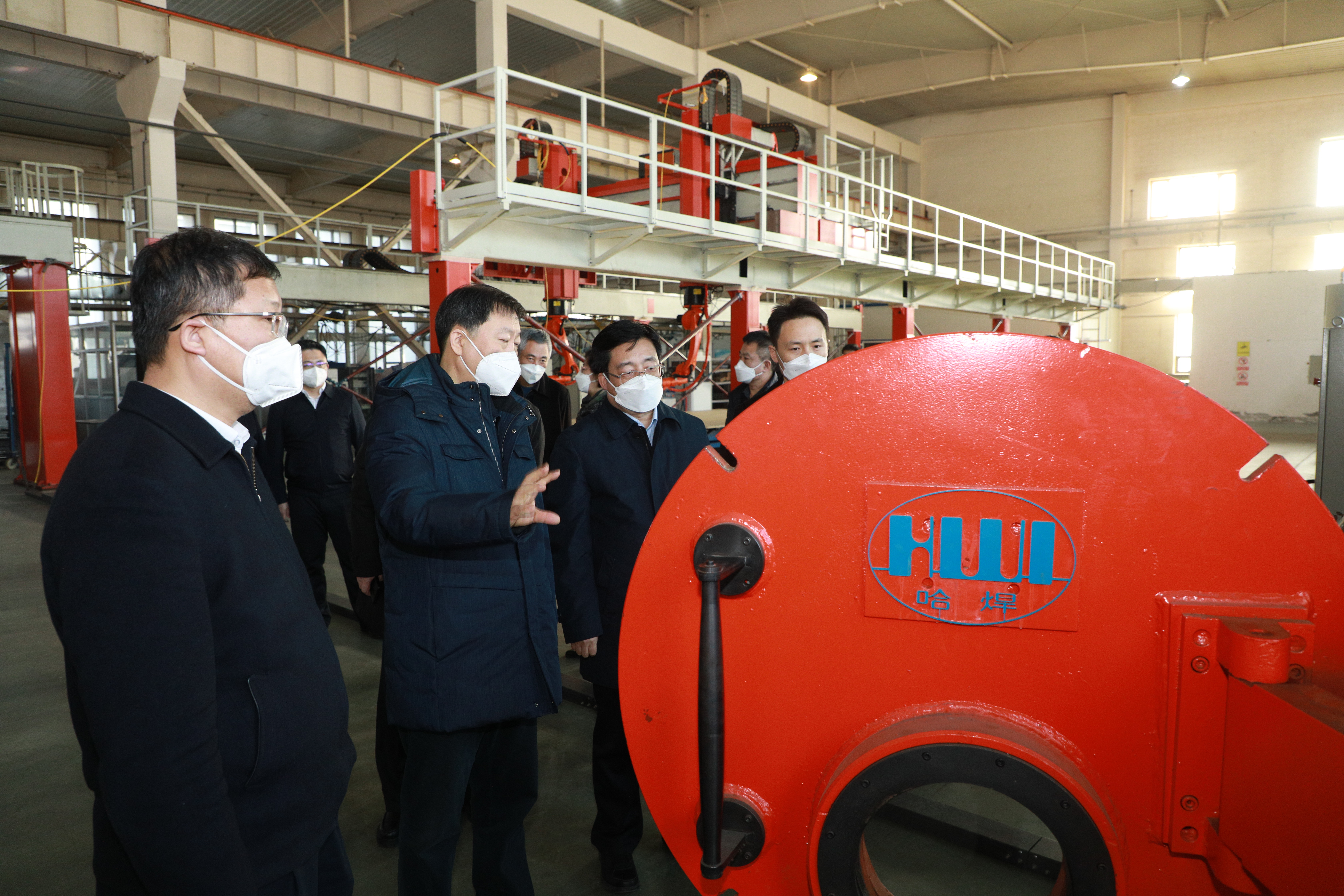 張安順走進焊接工藝裝備生產車間,察看產品類型、技術工藝,了解成套設備組裝、市場銷售情況,哈焊院黨委書記、董事長楊玉亭,總經理、黨委副書記雷振就具體情況予以詳細介紹。張安順對哈焊院勇于突破關鍵核心技術,攻克多個國家級科研項目“卡脖子”技術難關,擺脫關鍵設備依賴進口的做法給予肯定,勉勵哈焊院繼續發揚攻堅克難的拼搏勁頭,堅持創新、勇于創新,突破更多前沿技術,在市場競爭中贏得更大優勢和發展空間。